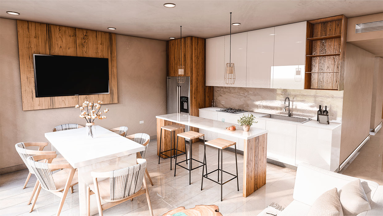 Así pues, el nombre del proyecto refleja un diseño arquitectónico, funcional que refleje en cada espacio de su diseño optimización de espacios de tu nuevo departamento en Playa del Carmen, así como abundancia en sus acabados para garantizar que tu inversión sea redituable en el futuro o un excelente lugar de paz a para vivir o vacacionar.